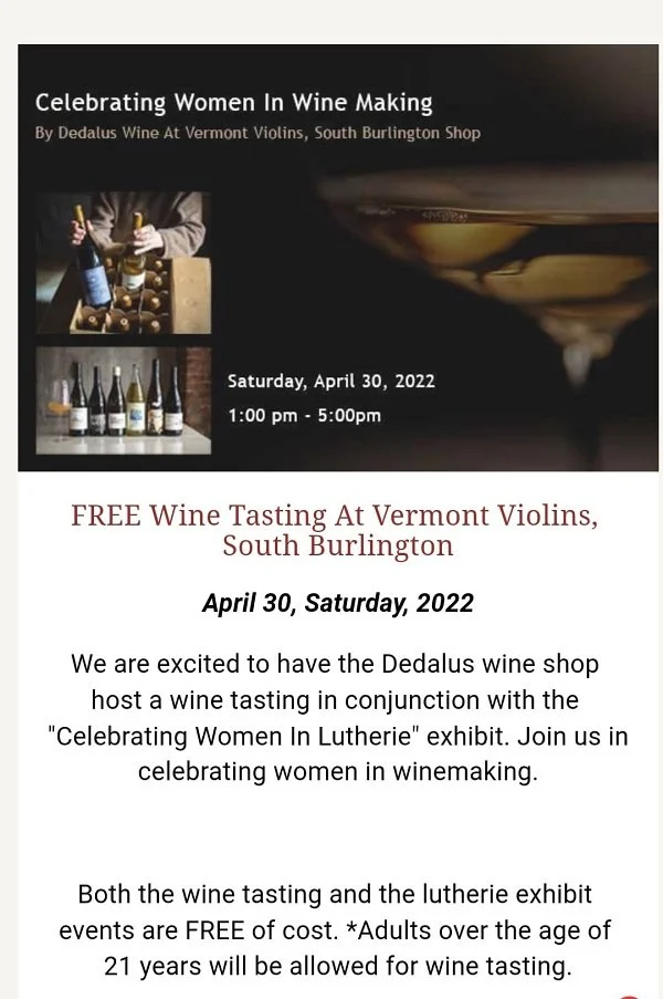 - Vermont Violins (South Burlington, VT) April 25- May 7, 2022